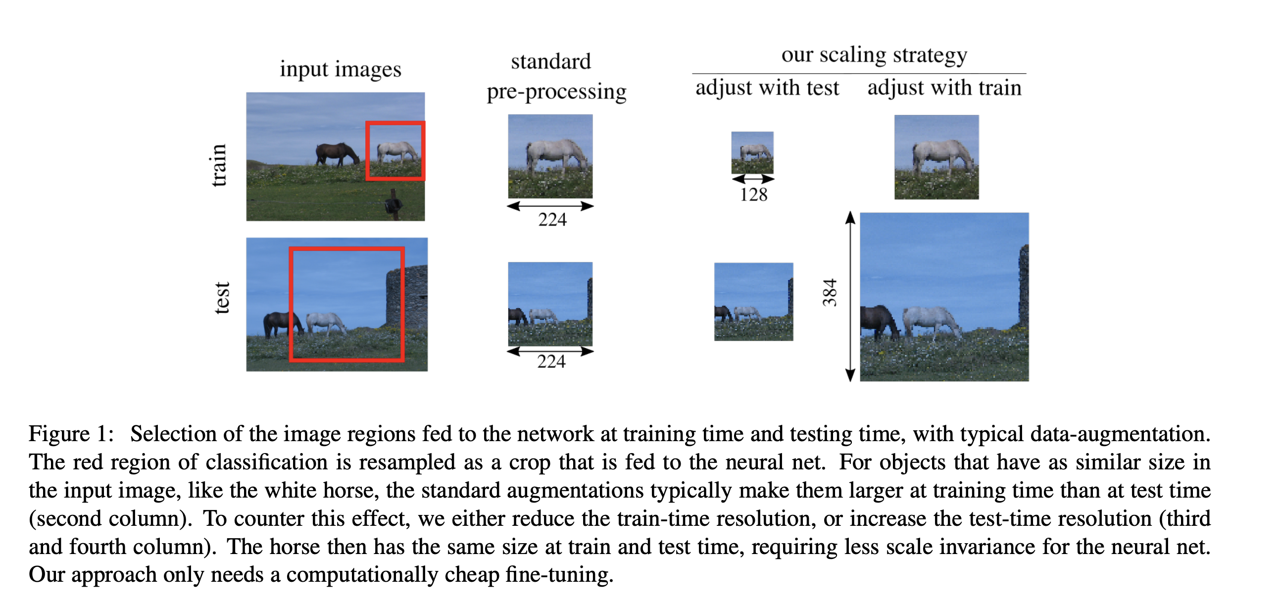 Data-augmentation is key to the training of neural networks for image classification. This paper first shows that existing augmentations induce a significant discrepancy between the typical size of the objects seen by the classifier at train and test time. We experimentally validate that, for a target test resolution, using a lower train resolution offers better classification at test time.